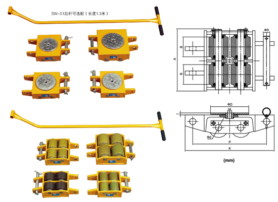 ● 與撬棒或千斤頂配合使用,可用于重型貨物的搬運(yùn)。大直徑尼龍輪(10噸型號(hào)配備鋼輪)幫助搬運(yùn)更省力,更好地保護(hù)地面以防受損。 ● 出于安全考慮,特別重的物體通常要用4只托輥來(lái)運(yùn)輸。 ● 在選擇托輥的承重能力時(shí),要將重型貨物的重量除以3舉例來(lái)說(shuō),如果你要搬運(yùn)一臺(tái)9噸重的設(shè)備,請(qǐng)選擇4臺(tái)SW30(最大承重為3噸) ● 大尺寸尼龍滑動(dòng)輪能保證移動(dòng)安全、均勻分布載荷,保護(hù)地面,并避免油脂污染地面。 ● 免維護(hù)滑動(dòng)輪可與手柄搭配,貨物搬運(yùn)更加方便、輕松。 ● 托輥為鋼制表面,穩(wěn)定性更強(qiáng)。
