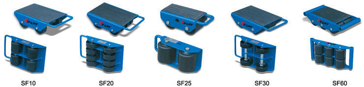 注意事頂: 以下滑動(dòng)輪系列產(chǎn)品的額定載重量是指受力為鋼制表面時(shí),滑動(dòng)輪組件所能承受的最大載荷,想要安全可靠的移動(dòng)載荷,最重要的是受力面的材料。瓷磚或易碎裂的受力面是不適合滑動(dòng)輪工作的,在混凝土或停機(jī)坪受力面上工作時(shí),滑動(dòng)輪的載重量將受到一定的限制(取決于受力面的設(shè)計(jì)壓力和表面平整度)。 建議鋪置厚度為10mm以上的鋼板在受力面上,滑動(dòng)輪的拉力一般為實(shí)際載重量的4%-7%(視受力面的平整度而定)。在斜坡上工作時(shí),一定要采取一些安全預(yù)防措施,避免滑動(dòng)輪失控和載荷傾翻。 選用滑動(dòng)輪時(shí),應(yīng)考慮載荷重量是否均勻分布,以確保單個(gè)滑動(dòng)輪單元的受力在其額定載重量之內(nèi),如有必要,可局部增加滑動(dòng)輪單元的數(shù)量。 ● 與撬棒或千斤頂配合使用.可用于重型貨物的移動(dòng) ● 耐磨橡膠表面可防止載荷滑動(dòng)并有效保護(hù)載荷表面