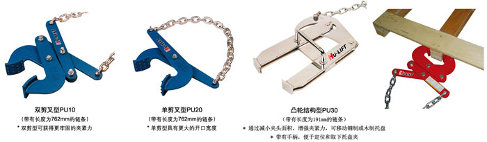 ● 適用于移動卡車、集裝箱或平臺上的托盤、板條箱等,以便叉車操作 ● 多種不同夾緊結(jié)構(gòu)設計,可自動松開載荷.夾頭采用鋼性凸齒設計,能不受木屑、油脂或油漆等影響而自行保持干凈.使用方便 ● 帶有1/4寸防銹高強度鏈條