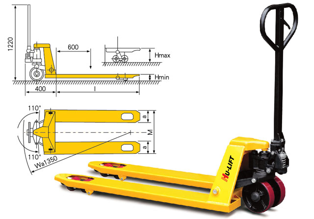 ◆貨叉最小Hmin/最大高度Hmax為75/195mm可選 ◆以上產(chǎn)品特殊貨叉長(zhǎng)度可定制:800、1500、1800、2000mm ◆前輪標(biāo)準(zhǔn)配置為雙輪,單輪可定制 ◆后輪標(biāo)準(zhǔn)配置為聚氨酯(PU),另有尼龍輪、橡膠輪可定制