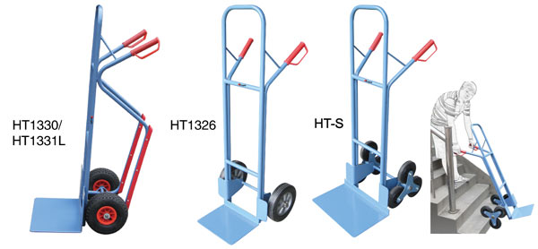 ● 實心橡膠胎 ● 三輪配置的搬運(yùn)車用于上下樓梯的搬運(yùn) ● HT-S適用于樓梯高度小于185mm的場合